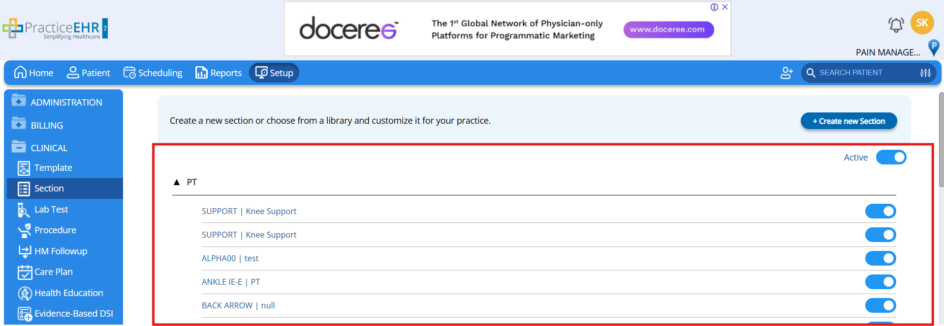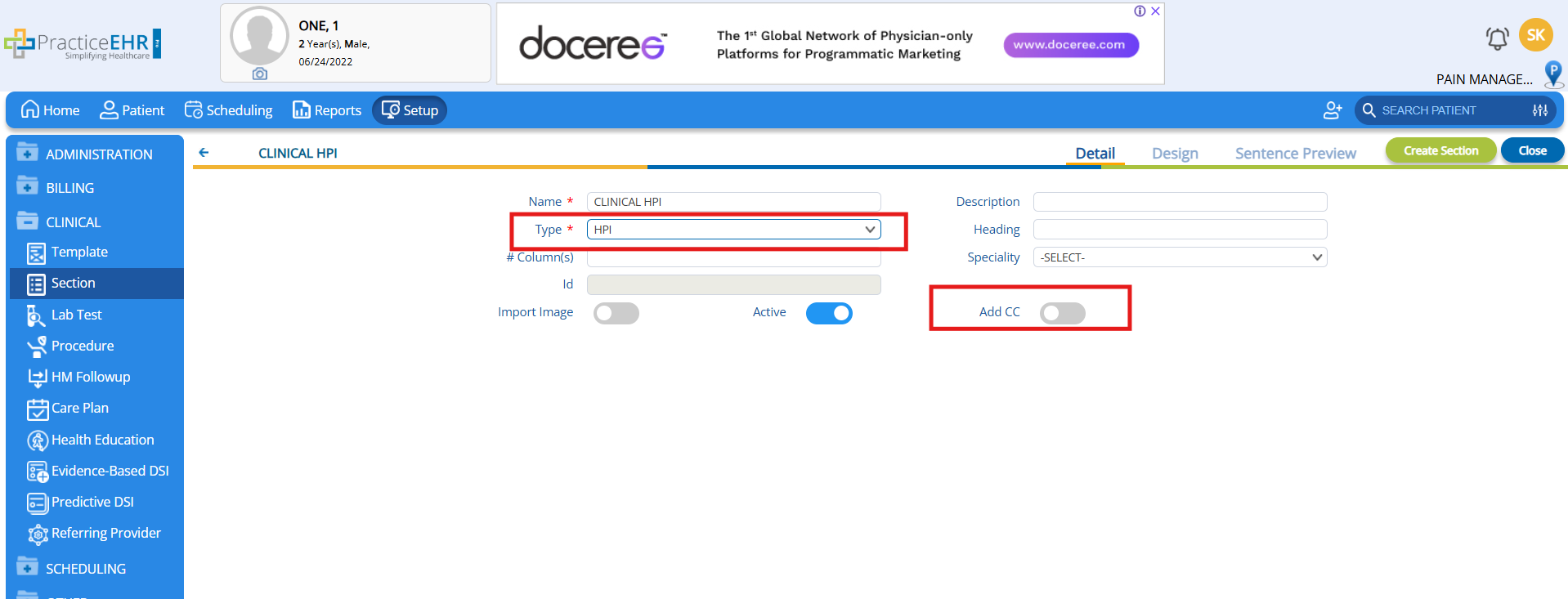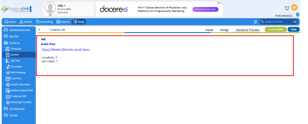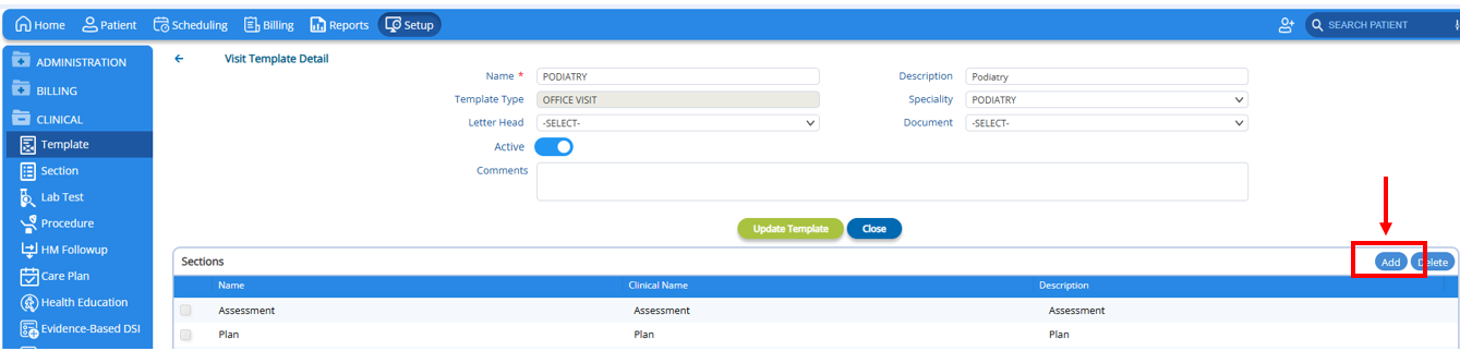- This section can now be added to different Templates as per the need for the “Create New Template” option in the Setup > Clinical > Template or by editing any existing template.