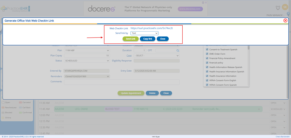 An improvement has been made to the Web Check-In Link via Text Message feature, allowing customization of the message content through a configured template. Previously, the text message sent with the Web Check-In link had a fixed format. With the latest enhancement, the text message format is now configurable. This means the content of the message can be tailored to suit specific practice needs.